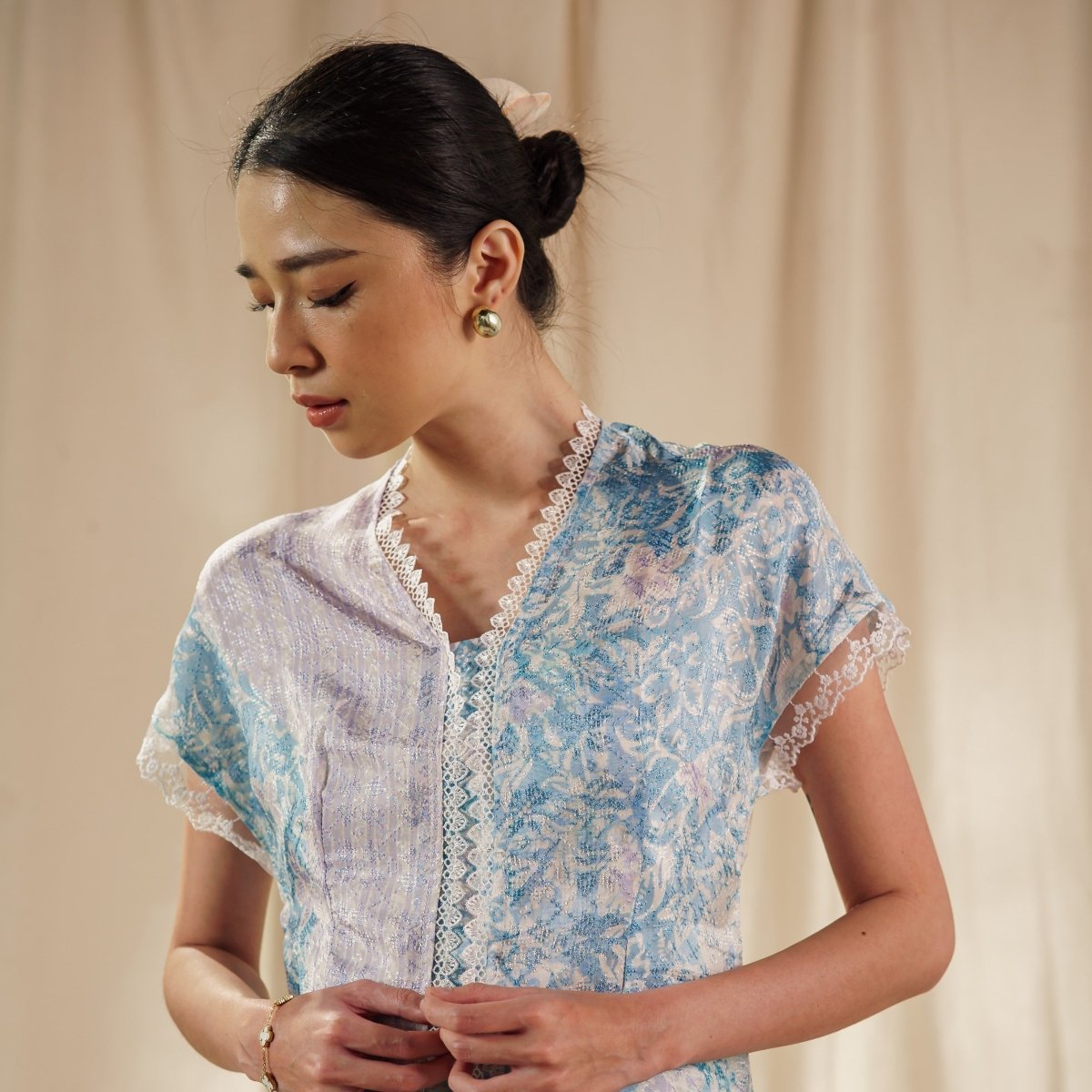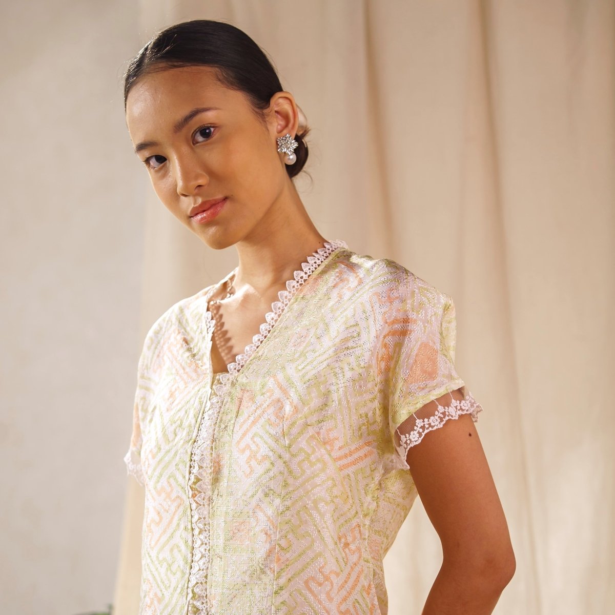 Dalilah Lengan Pendek - Mandalas Atasan Kebaya Set Wanita Outer Batik Bordir Modern