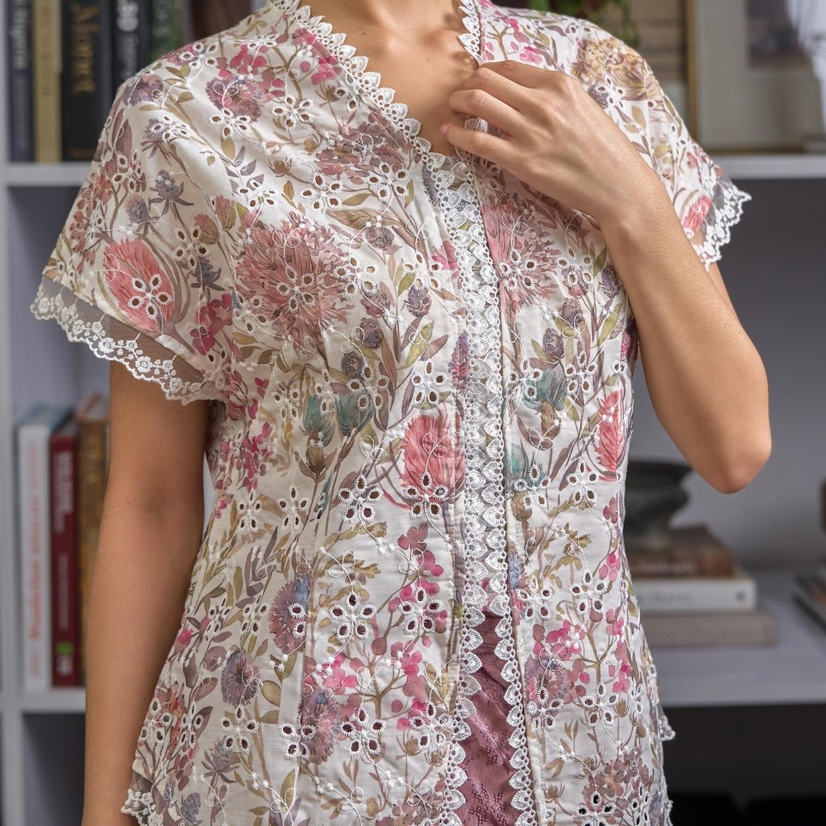Mila Lengan Pendek - Mandalas Atasan Kebaya Wanita Outer Katun Bordir Modern Bunga