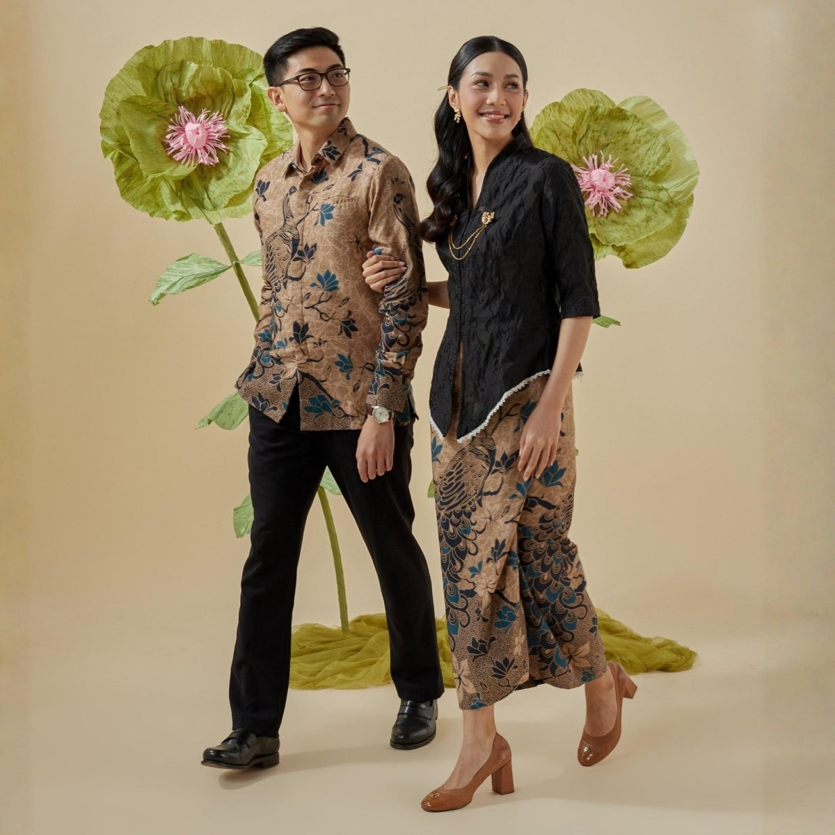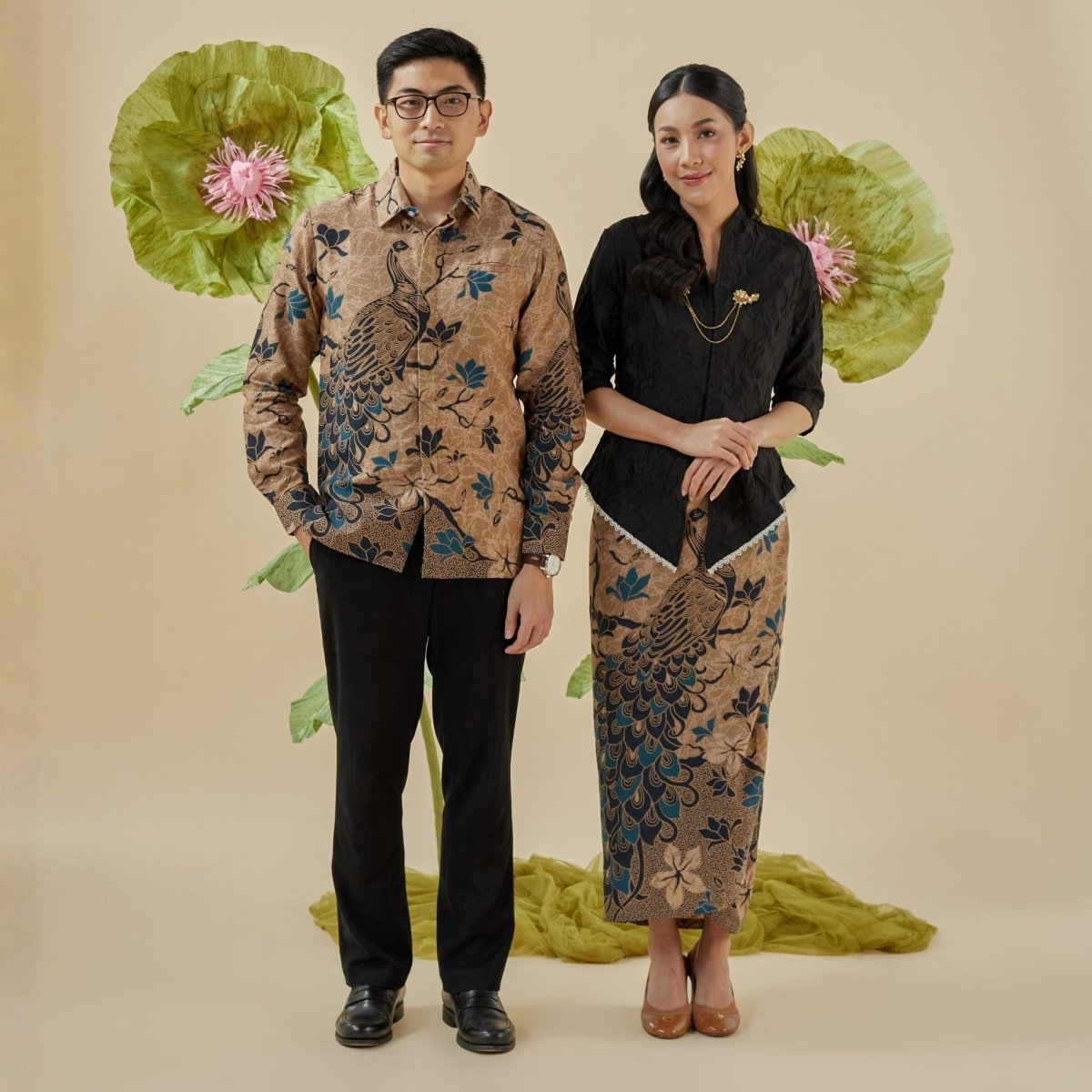 Blutit sarimbit set, matching couple outfits crafted by Indonesian artisans from soft, lightweight dobby cotton. A perfect blend of traditional Indonesian batik heritage and modern style for your special occasions.